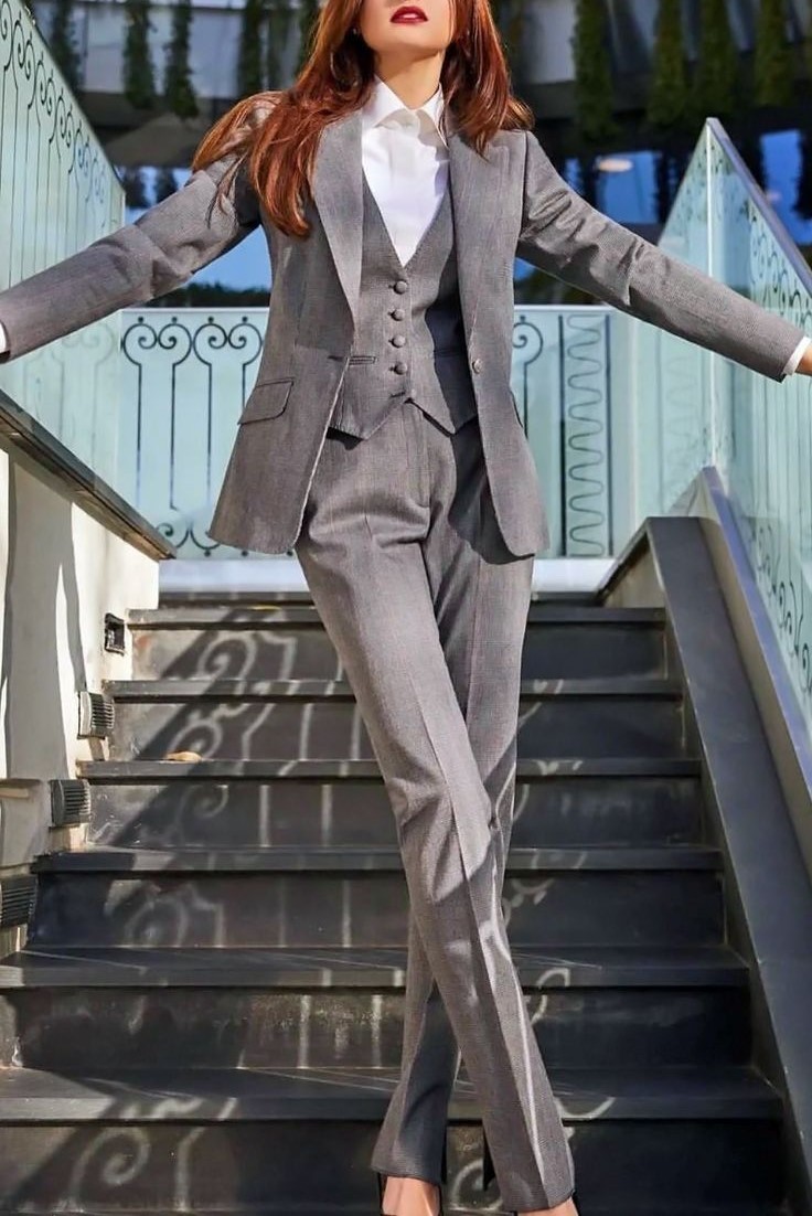 Conjunto composto por blazer estruturado, colete e calça de alfaiataria, com cortes e modelagem diferenciados que proporcionam conforto e caimento perfeitos no corpo. A escolha ideal para quem busca um visual sofisticado e de alta qualidade, com uma combinação de peças elegantes e atemporais.