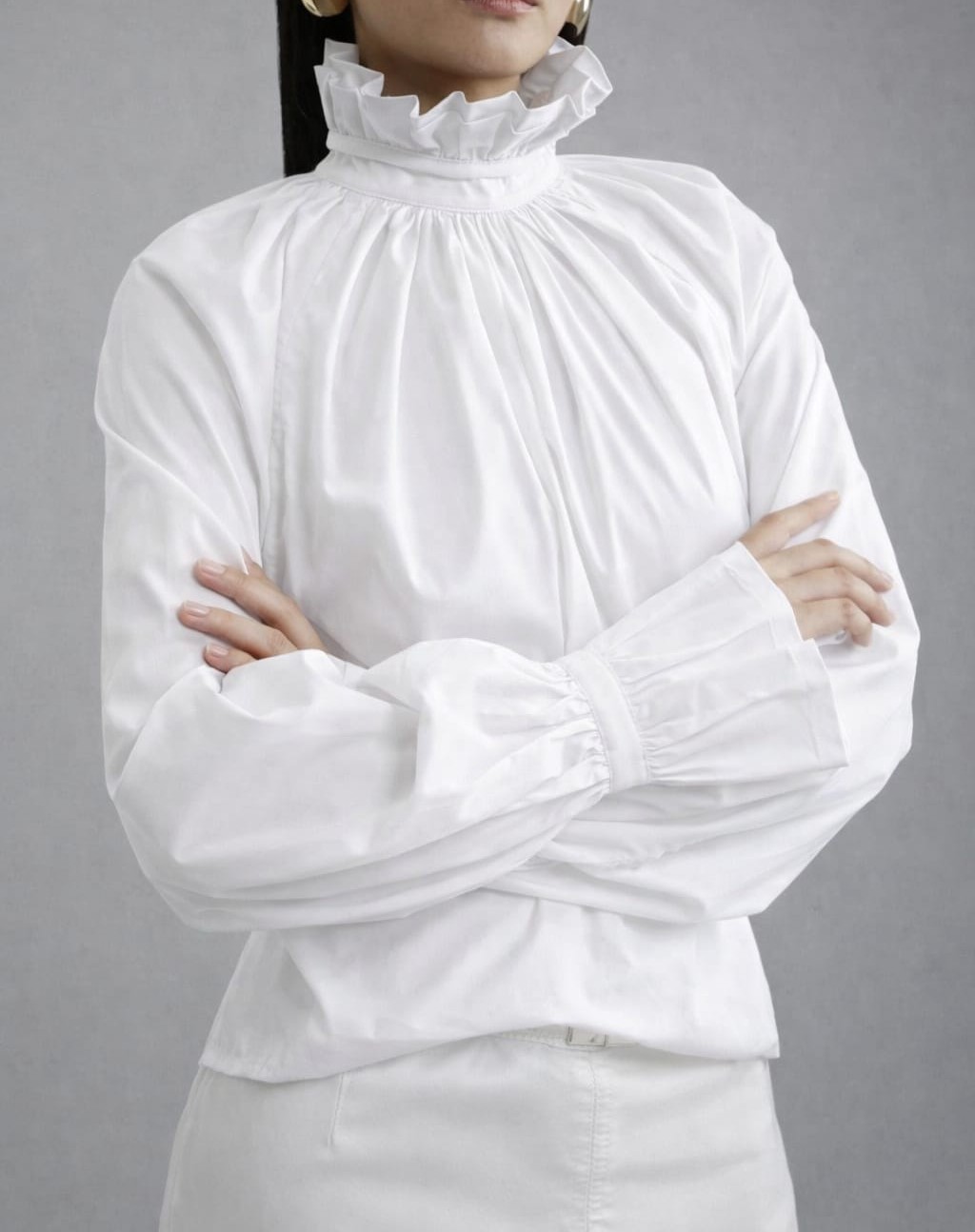Descubra a sofisticação e a beleza da nossa camisa de manga longa, com gola alta e detalhes exclusivos. Uma peça que combina elegância e estilo refinado.