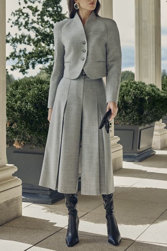 Adicione um toque de elegância ao seu guarda-roupa com este conjunto de Blazer Spencer e calça alfaiataria pantacourt, projetado para oferecer conforto e um caimento impecável com recortes e corte exclusivo da alfaiataria artesanal.
